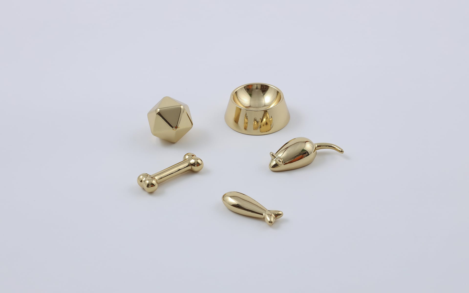 あの子達が大好きだったごはんやおもちゃ。あの頃と同じように喜んでもらえたら。そんな気持ちから生まれたのが「LITTLE FAVE(小さなお気に入り)」。BONE、BALL、FOOD BOWL、SAKANA、NEZUMI の 5 つのラインナップは、程よいサイズ感とシンプルな造形で木製オブジェ「WOODLOVERS」にもぴったり。小さくてもしっかりとした重さが感じられる真鍮をベースに、一つひとつ鋳物から手仕事での仕上げを経て作られています。FOR CAT、FOR DOGとして、それぞれお気に入りの3点セットもご用意しています。