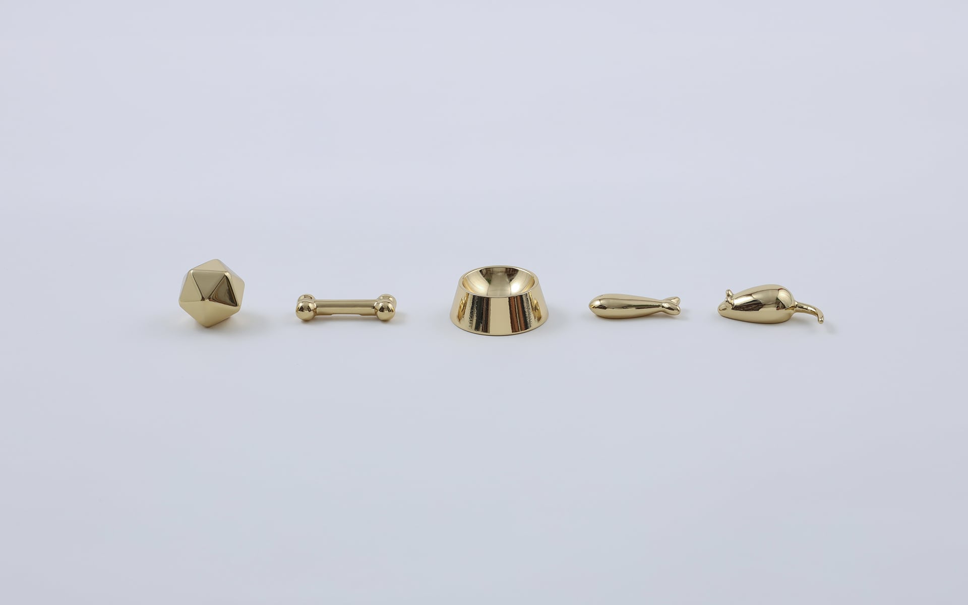 あの子達が大好きだったごはんやおもちゃ。あの頃と同じように喜んでもらえたら。そんな気持ちから生まれたのが「LITTLE FAVE(小さなお気に入り)」。BONE、BALL、FOOD BOWL、SAKANA、NEZUMI の 5 つのラインナップは、程よいサイズ感とシンプルな造形で木製オブジェ「WOODLOVERS」にもぴったり。小さくてもしっかりとした重さが感じられる真鍮をベースに、一つひとつ鋳物から手仕事での仕上げを経て作られています。FOR CAT、FOR DOGとして、それぞれお気に入りの3点セットもご用意しています。