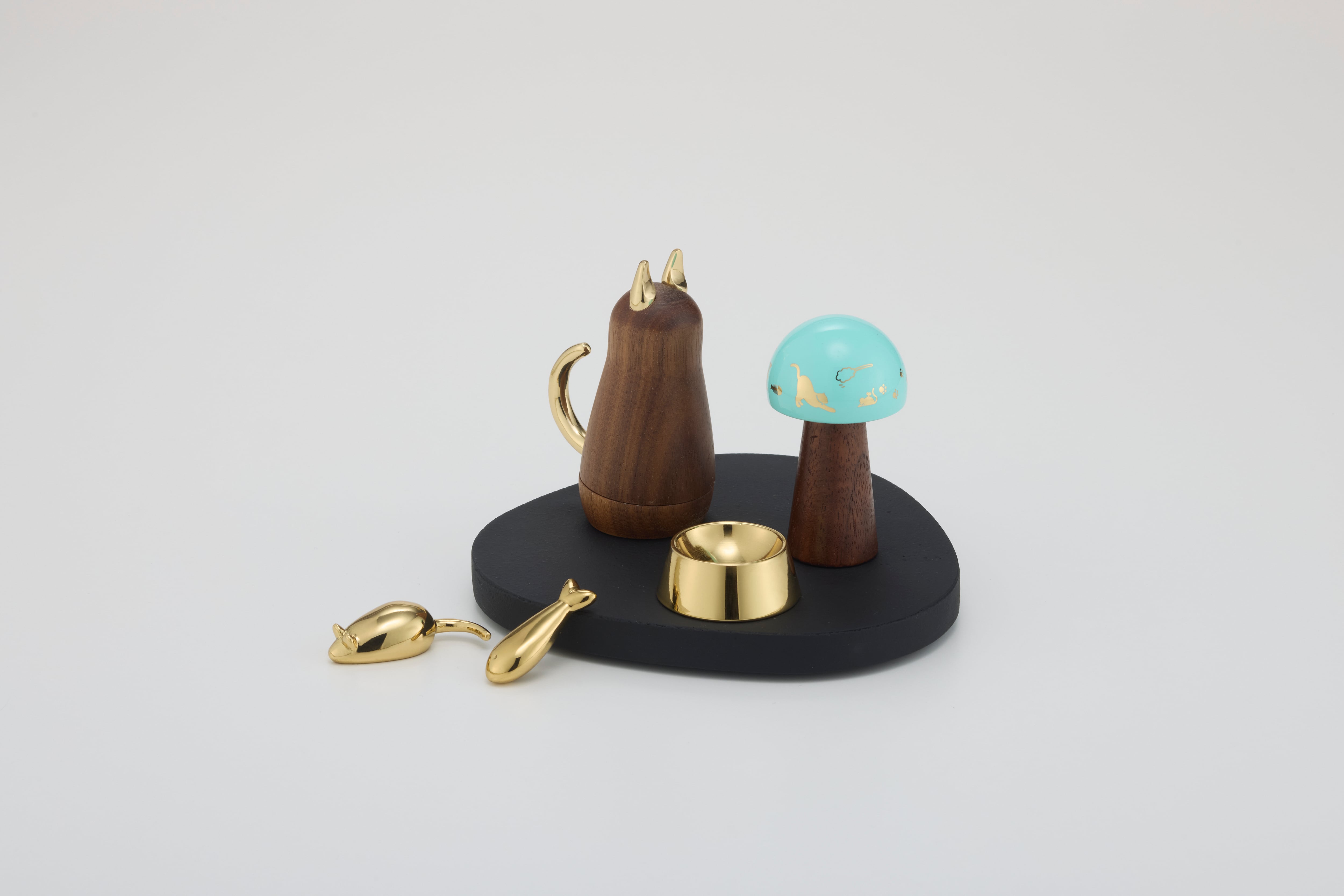 WOOD LOVERS:本体:ウォールナット(WN) |耳・尻尾:真鍮ゴールド(G) / 真鍮シルバー鍍金(S) |底部磁石埋め込み|内部真鍮製容器付き