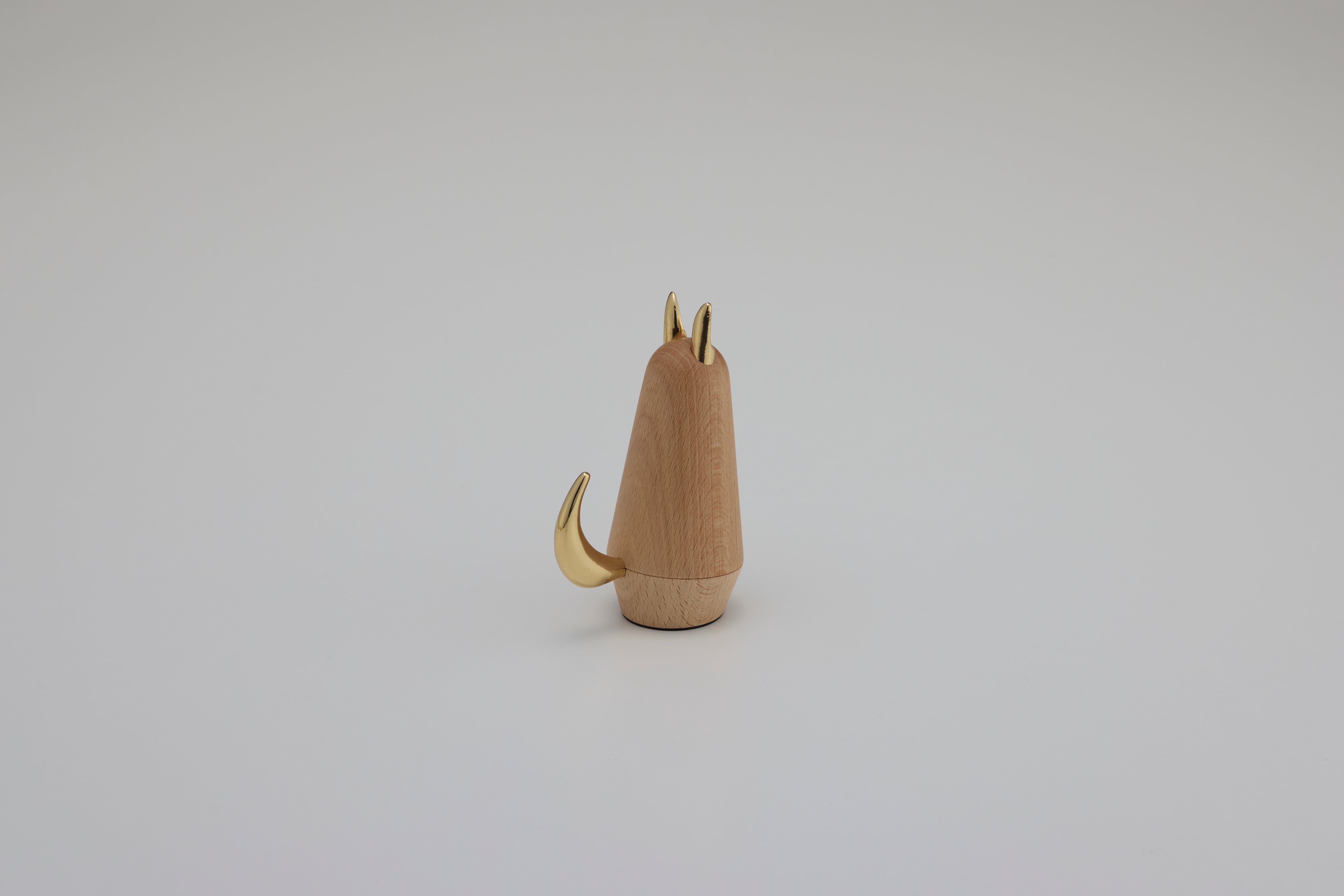 丸みのあるラバーズたちの木製オブジェ。本体は全国一の木地ろくろ挽き物産地である石川県山中にて。重厚感のある耳と尻尾は鋳物の町、富山県高岡市でそれぞれ製作。特徴的なフォルムを捉えつつシンプルな造形にとどめることで、表情や仕草など想像力が広がります。大きいオブジェの方は内部に蓋付きの容器が入っており、自分だけの小さな思い出の品をそっとしまっておくことができます。