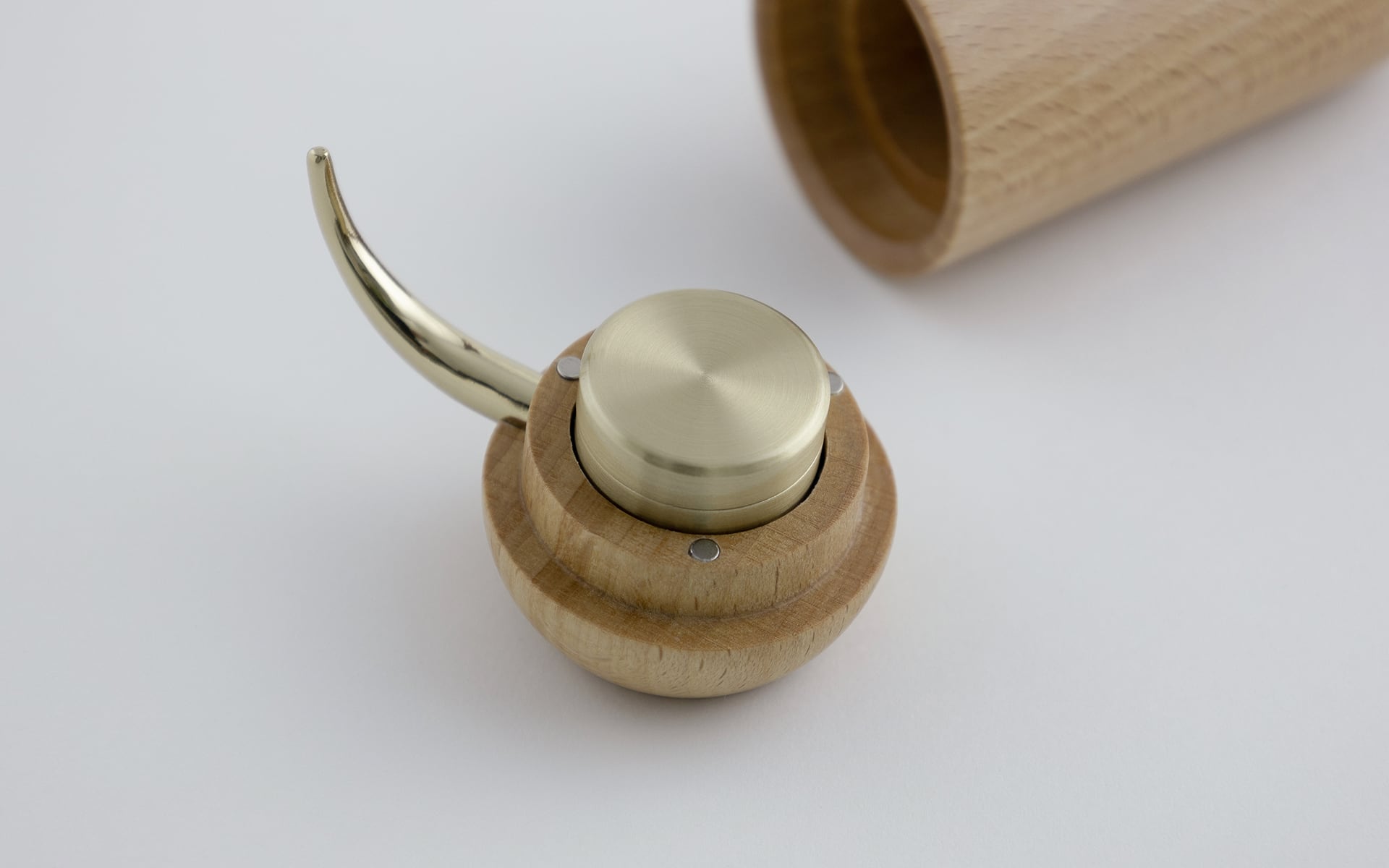 本体:ウォールナット(WN)|耳・尻尾:真鍮ゴールド(G)|底部磁石埋め込み|内部真鍮製容器付き